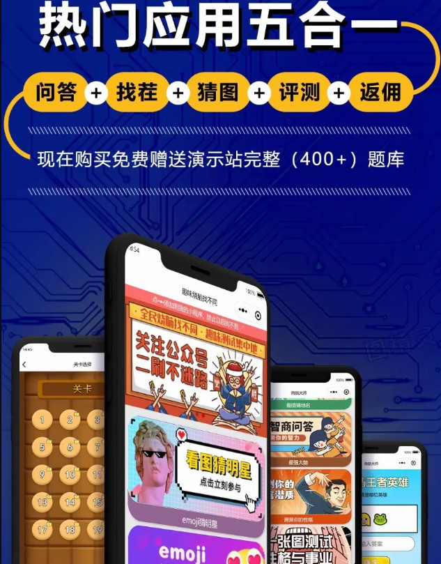 烧脑大师问答找茬猜图评测多合一烧脑小程序一条龙搭建